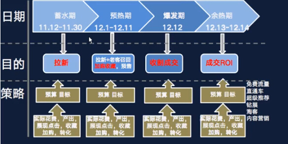 1.双十二的脚步也越来越靠近了,当新品遇上双十二,具体玩法又应该包括什么呢?首先先展示一下对应日期和策略